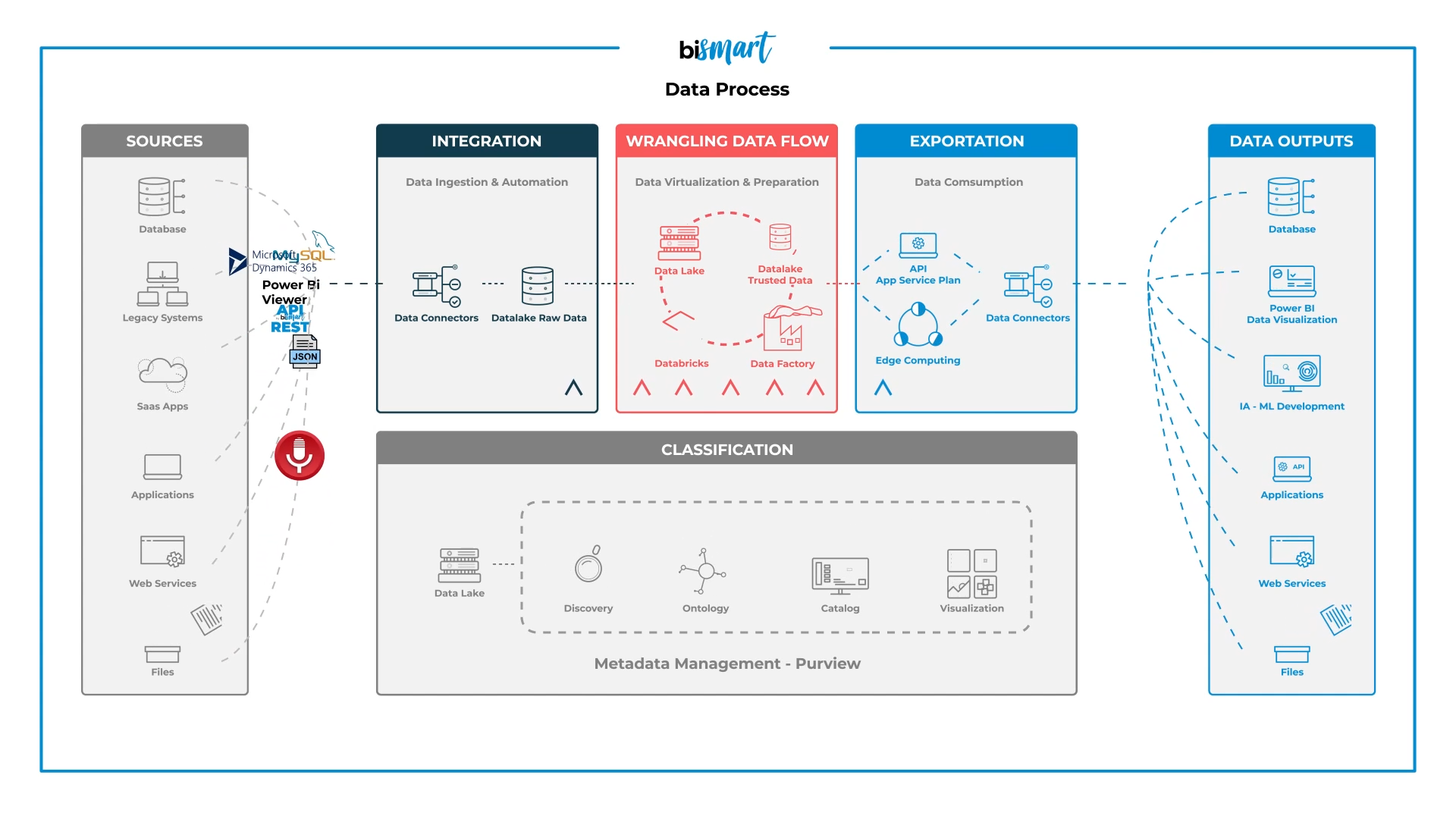 Para que los datos constituyan información deben pasar por varios procesos que permiten la ingesta de datos en bruto y su transformación en insights. Este proceso abarca desde la localización de los datos hasta su análisis y posterior transformación en informes y cuadros de mando analíticos. La visualización de datos resulta fundamental para que los usuarios puedan leer y entender los datos, hacer descubrimientos y generar insights.